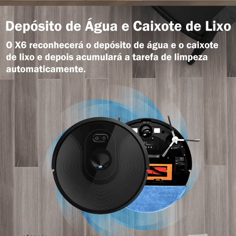 Com 6000pa de sucção máxima , ele remove sujeiras e poeiras com precisão, enquanto o sistema de navegação tripla avançado (Câmera + VISION + SLAM) garante uma limpeza adequada, sem perder nenhum canto.