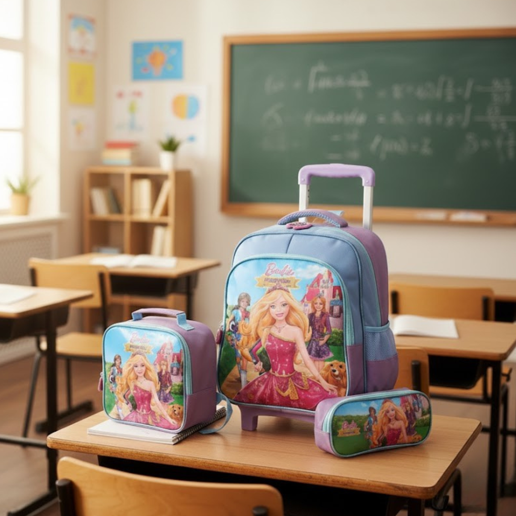 Conjunto Escolar Barbie – Mochila de Rodinhas + Lancheira + Estojo Infantil