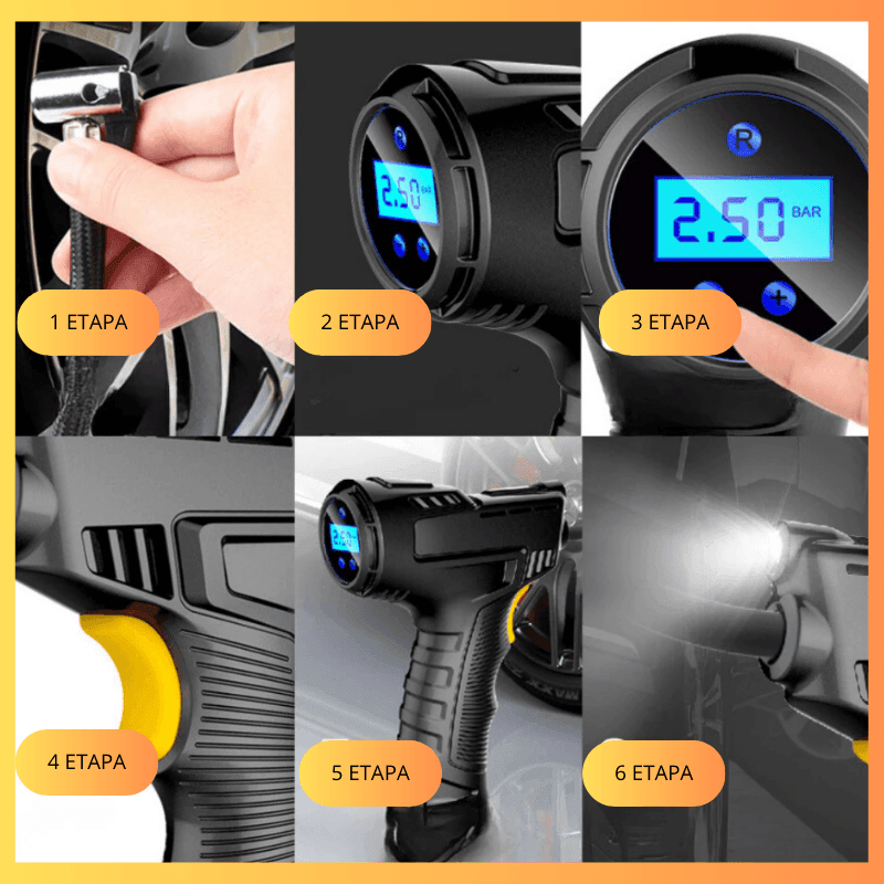 Inflar os pneus em minutos , economizando tempo e Ă© o seu Ăștil salvador na estrada!