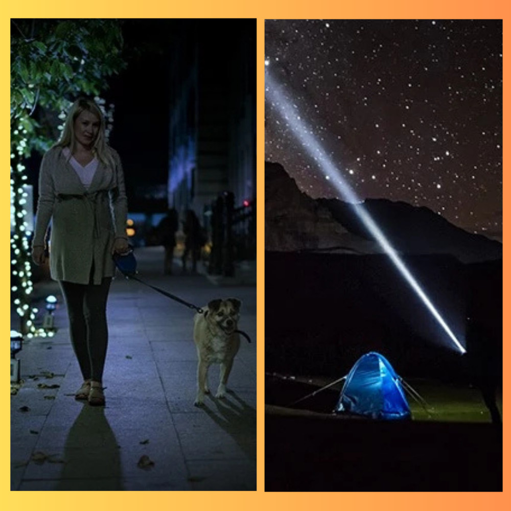 Com 7 modos de luz (incluindo branco, vermelho e azul), é ideal para diversas atividades como acampamentos e uso diário, adaptando-se a qualquer situação.