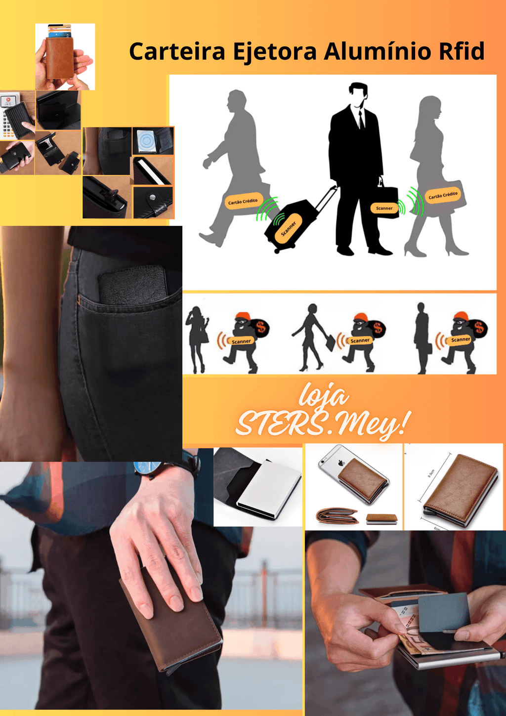 Modernize seu dia a dia com a Carteira RFID Push Anti-Furto. Fabricada com alumínio de aviação e aço inoxidável, esta carteira combina design minimalista com tecnologia de segurança de ponta.