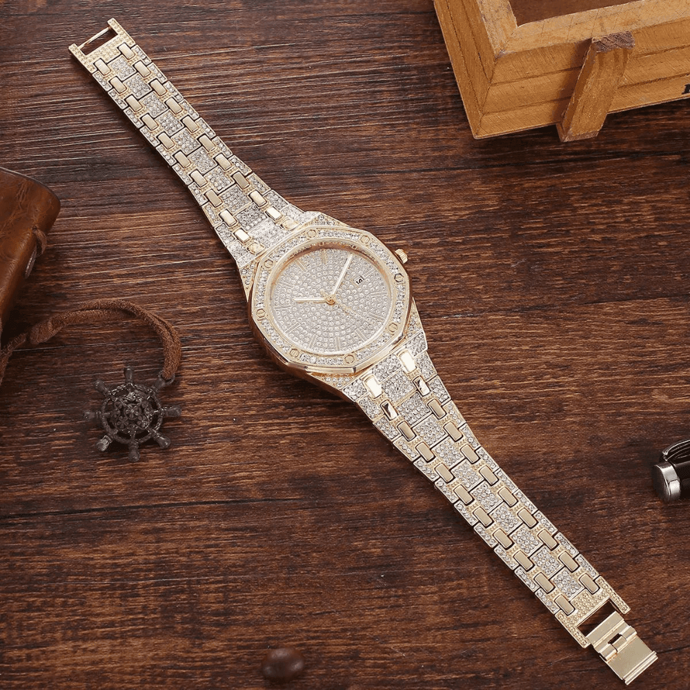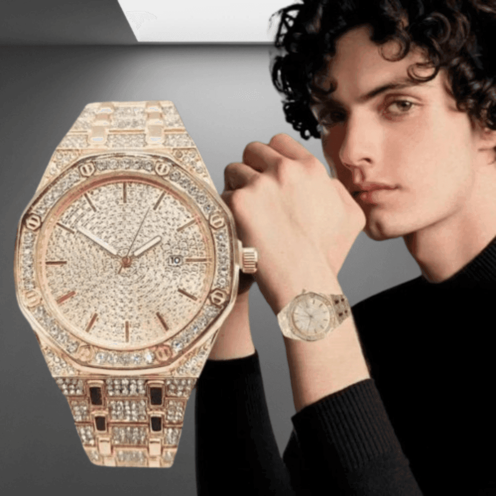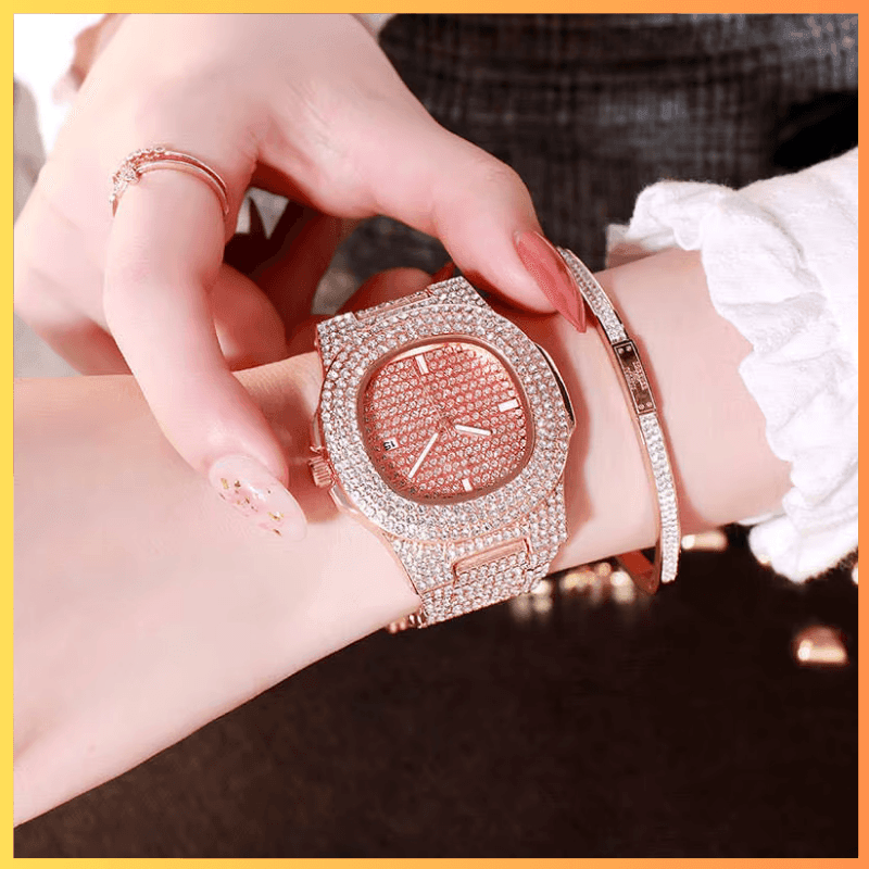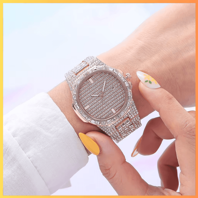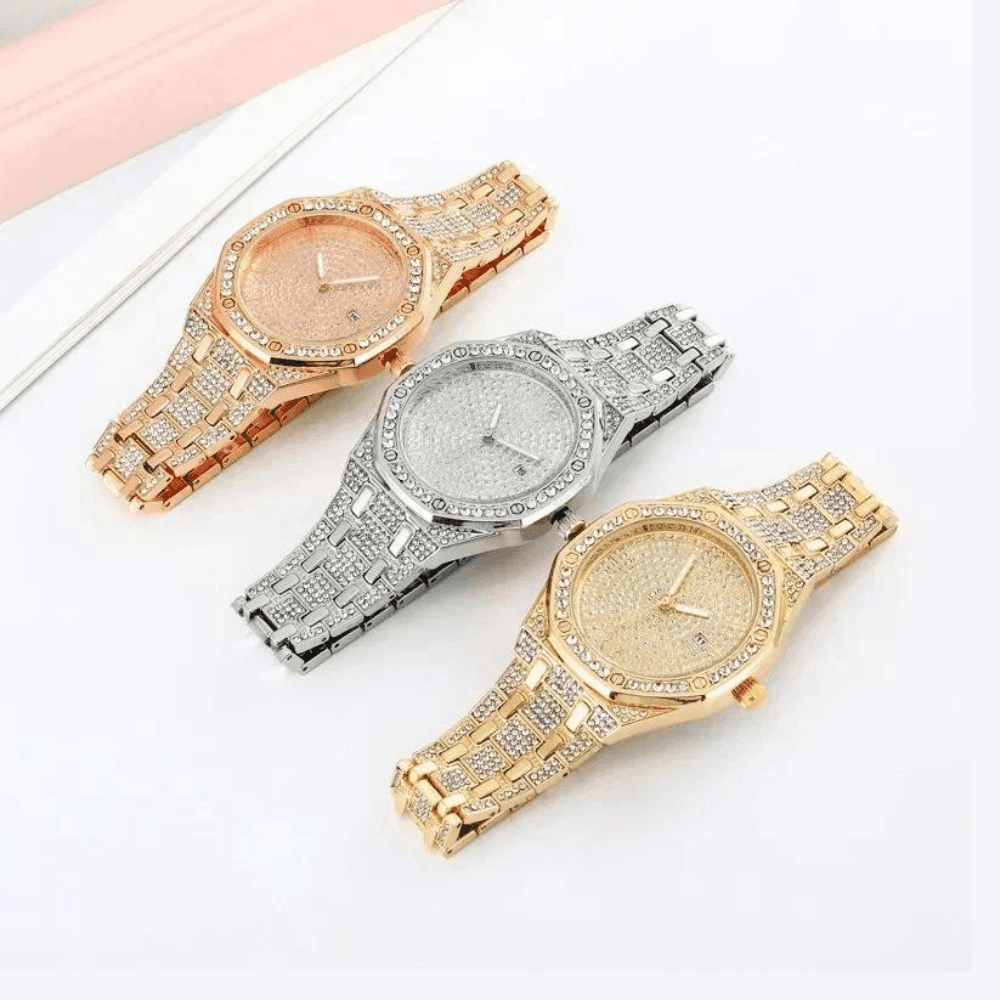 Relógio elegante com pedras de zircônia, disponível em Dourado, Prata ou Rose. Com pulseira ajustável de aço inox banhado (22cm) e largura de 24mm, é resistente à água (3m) e possui diâmetro da caixa de 42mm. Movimento de quartzo à bateria, peso de 108g e 6 meses de garantia no maquinário. Beleza e durabilidade em um só acessório.