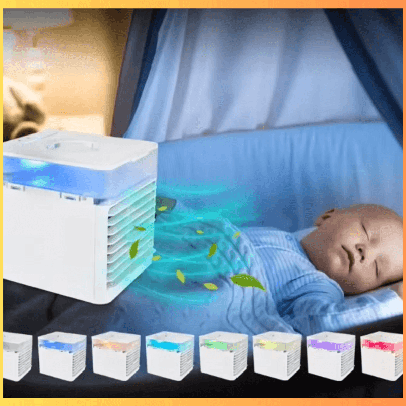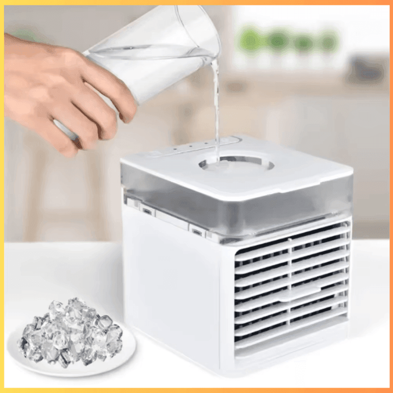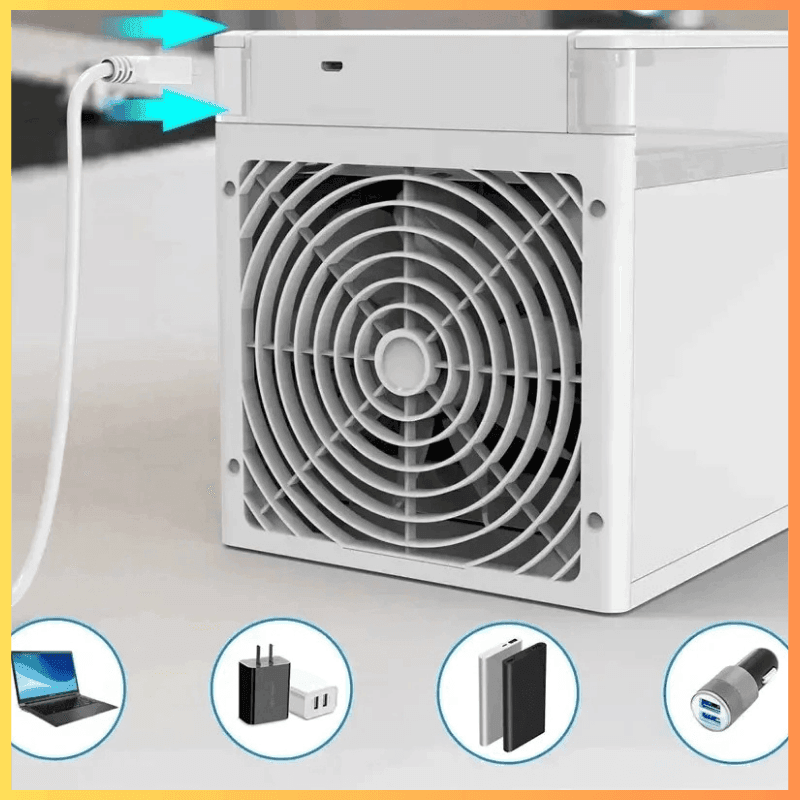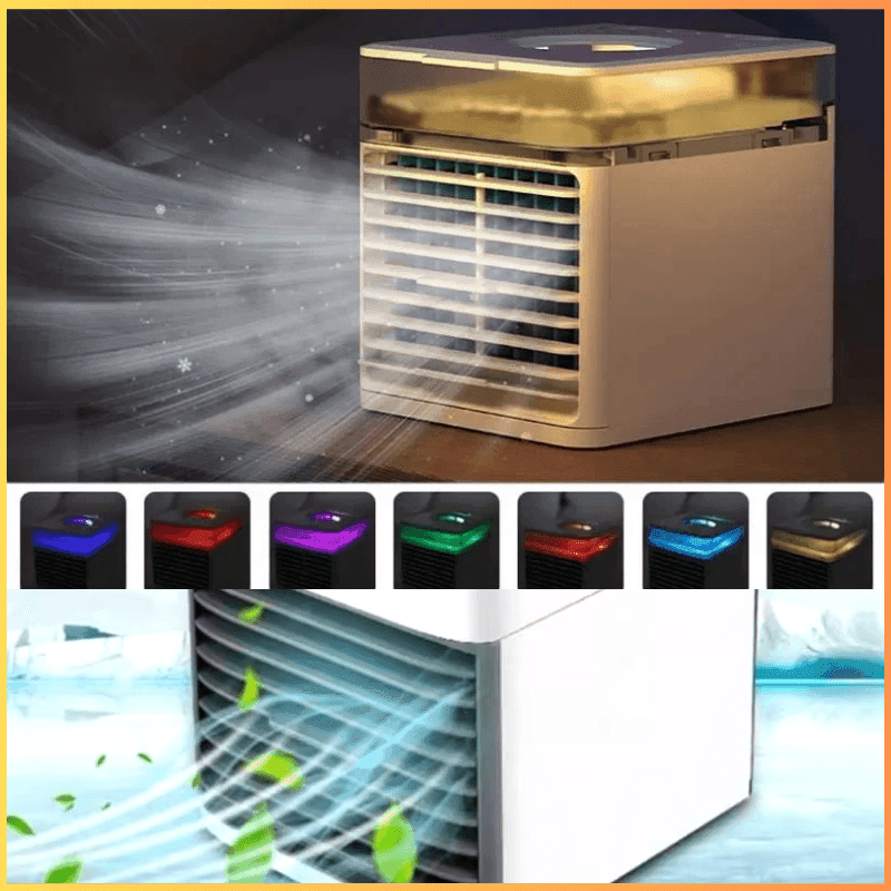 Atenção; é um mini ar portátil, garante o frescor de ambientes pequenos ou próximos ao corpo, não espere a mesma eficácia de um ar condicionado tradicional.