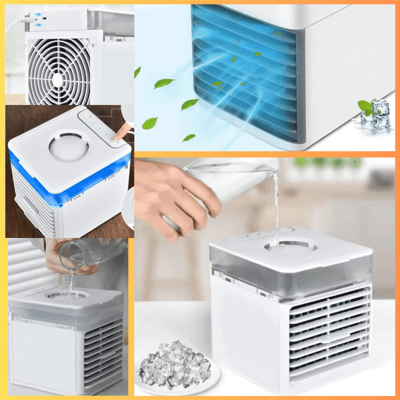 Mini ar condicionado refrigerador a base de gelo para mesa de quarto, escritório, salas, cozinhas. Perfeito para todas as estações do ano, pois funciona como ar condicionado, purificador e umidificador de ar!!!
