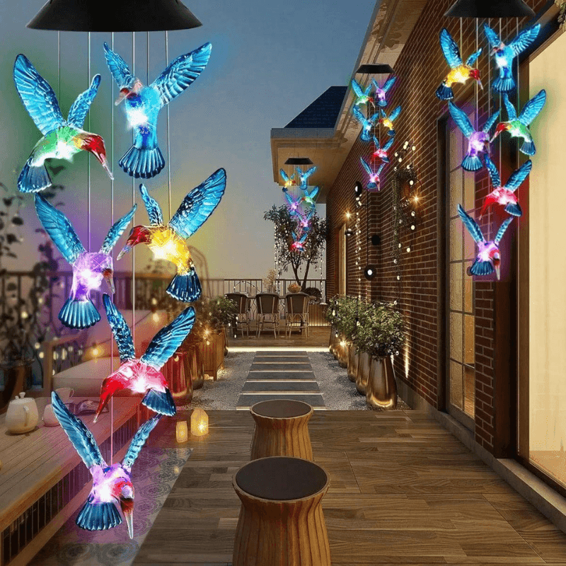 Economia de energia e ambiente amistoso Suspensão carrilhões com energia solar cor mudança LED brilho estrelas. Carregue durante o dia e transforme a luz em eletricidade. Cada luz Decorativa De Beija-Flor pode funcionar por até 100.000 horas.
