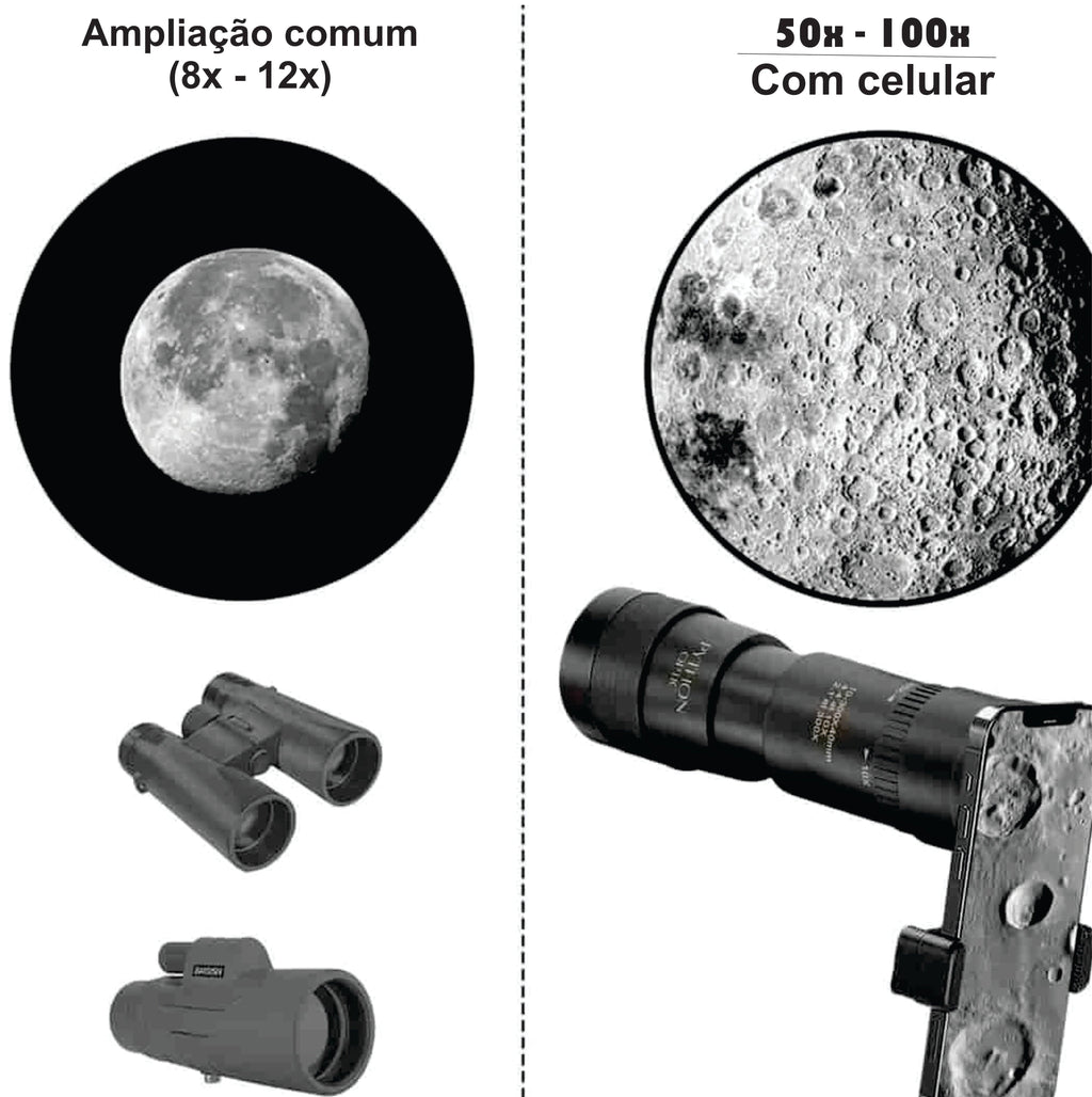 O Python HD 12x45 Super Monóculo Profissional oferece uma ampliação de até 300x sem prejuízos na qualidade da imagem. Esta ampliação é quase cinco vezes maior que o zoom máximo de câmeras de celular, mesmo com objetos distantes. Graças ao Super Monóculo você pode usar o zoom sem comprometer a nitidez da imagem.