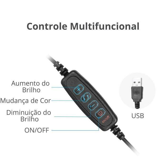 Cabo extra longo e parafusos robustos o Anel de Iluminação LED é ideal para fotos, vídeos, retratos, moda, maquiagem e mais.